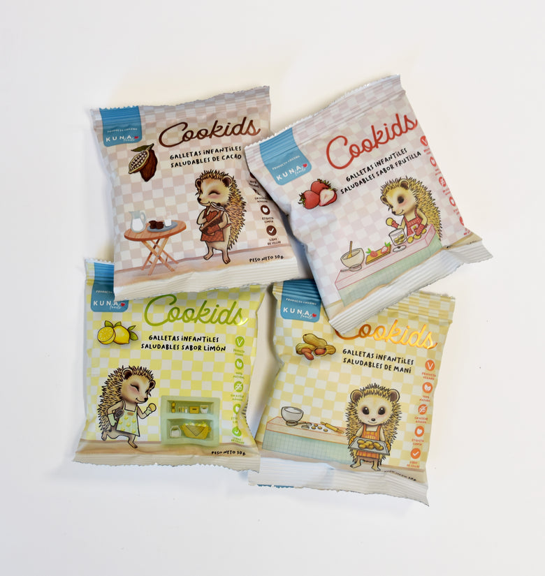 Disfruta los 5 sabores favoritos en un solo pack: cookids original, frutilla, cacao, maní y limón 🍪.
